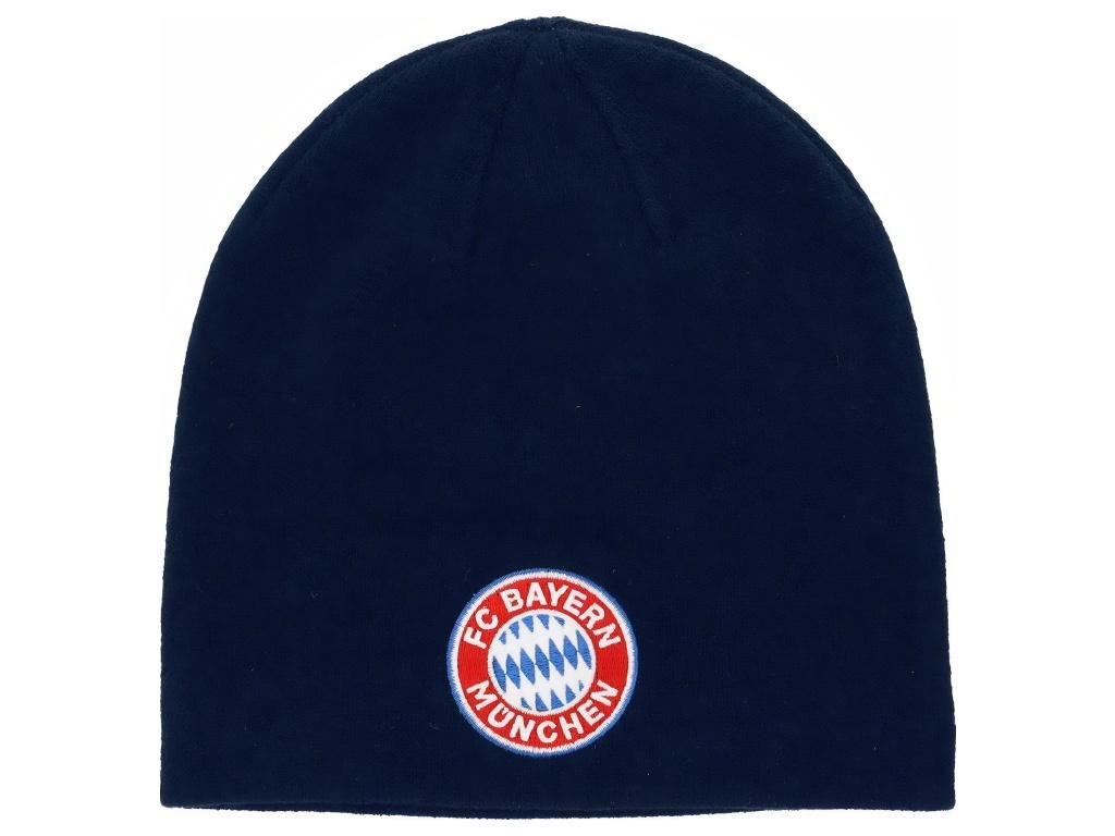 Detská pletená čiapka FC Bayern Mníchov v tmavomodrej farbe. Mäkký polyakryl s prímesou elastanu príjemne zahreje a pružne sadne na hlavu. Na prednej strane je vyšívaný znak klubu v klasických červeno-modro-bielych farbách. Zadná strana je hladká, bez motívu.