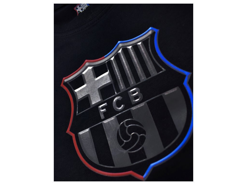 Detské tričko FC Barcelona v elegantnej čiernej farbe. Na hrudi výrazný znak FC Barcelona s 3D efektom a farebným obrysom v červenej a modrej. Klasický strih a krátke rukávy zabezpečujú pohodlné nosenie. Vyrobené z kvalitnej 100% bavlny.
