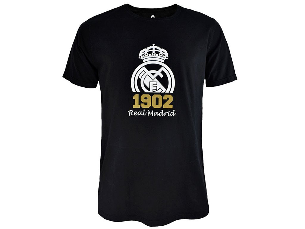 Čierne detské tričko Real Madrid 1902 s krátkym rukávom a výrazným motívom na hrudi. Vhodné pre malých fanúšikov na každý deň. 100 % bavlna je mäkká a príjemná na koži. Okrúhly výstrih sa dobre oblieka. Veľký klubový znak so založením 1902 je vyhotovený kvalitnou potlačou. Ľahko sa kombinuje s džínsami aj so športovými nohavicami.