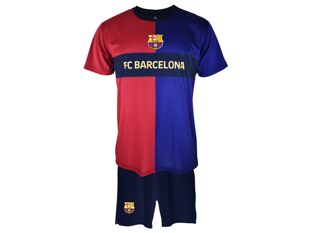 Detská sada domáceho fanúšikovského dresu FC Barcelona FC 24/25 v ikonických klubových farbách. Červená a tmavomodrá farba. Štýlová sada inšpirovaná domácim dresom FC Barcelona pre sezónu 2024/2025, obsahujúca dres a šortky. Farebný znak klubu na ľavej strane hrude a na šortkách. Zlatý nápis FC BARCELONA na prednej strane dresu. Vyrobené z priedušného polyesteru. Dostupné v rôznych detských veľkostiach.