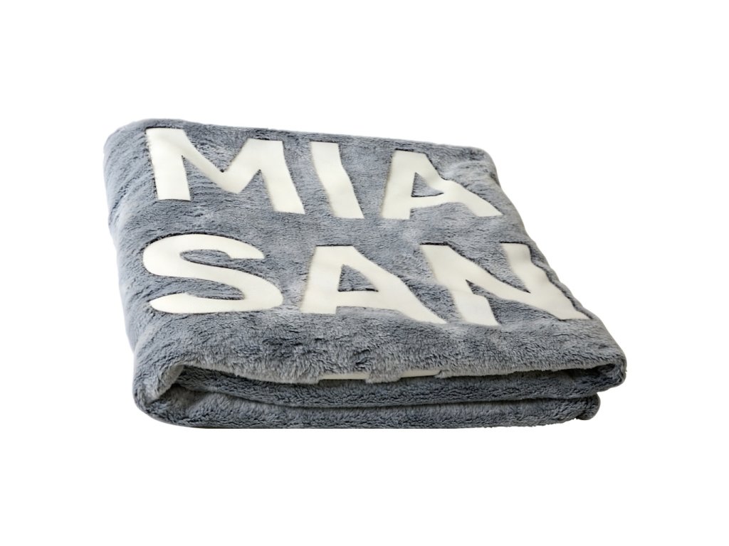 Fleecová deka FC Bayern Mníchov v kombinácii odtieňov sivej. Biely znak klubu uprostred. Rozmer 150 x 200 cm. Príjemný a mäkký polyester.