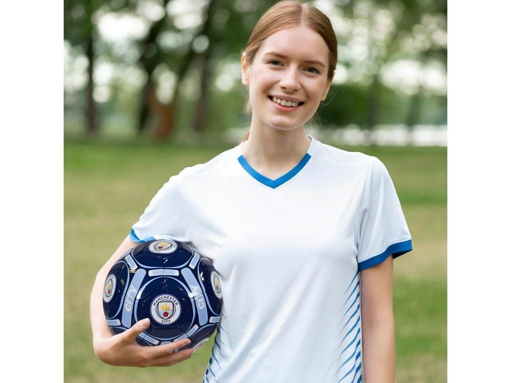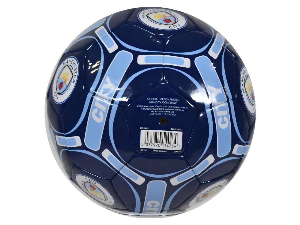 Futbalová lopta Manchester City FC veľkosti 4 v tmavomodrom prevedení so svetlomodrými grafickými prvkami. Lopta je určená pre voľnočasovú rekreačnú hru. Na povrchu sa opakuje klubový znak Manchester City a nápis CITY na niekoľkých miestach, takže na prvý pohľad prezradí, komu fandíš. Povrch z PVC je odolný a ľahko sa udržiava. Strojovo šitá konštrukcia zabezpečuje rovnomerný tvar a stabilný let. Veľkosť 4 zodpovedá obvodu cca 63–66 cm a hodí sa pre deti a mládež približne 8–12 rokov. Loptu odosielame z bezpečnostných a prepravných dôvodov vyfúknutú. Pred prvým použitím ju dofúkni bežnou pumpičkou s ihlou.