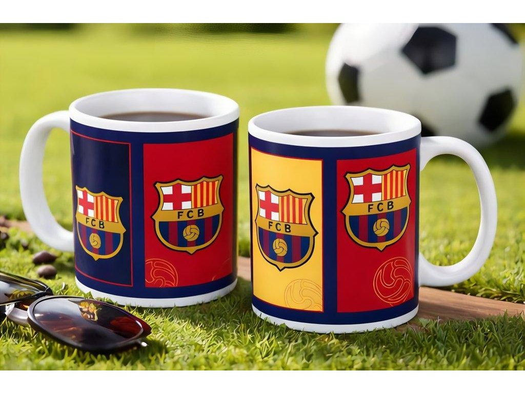 Keramický hrnček FC Barcelona s klubovými znakmi na farebných paneloch v klasických farbách Blaugranas. Hrnček z keramiky o objeme 330 ml sa hodí na rannú kávu aj popoludňajší čaj. Celý povrch zdobia opakujúce sa znaky FC Barcelona na tmavomodrých, červených a žltých poliach s jemnými motívmi futbalovej lopty v pozadí. Na uchu hrnčeka nájdeš nápis FORÇA BARÇA. Hrnček je dodávaný v darčekovej krabičke, takže je pripravený na darovanie.