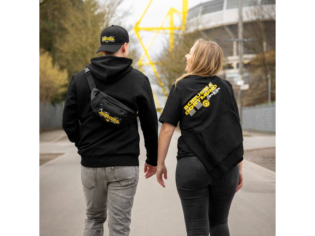 Oficiálna ľadvinka Borussia Dortmund v čiernej farbe so žltým logom a výraznou potlačou BVB. Kontrastné žlté prvky na čiernom podklade okamžite pritiahnu pozornosť a jasne ukážu, komu fandíš. Na prednej strane je nápis BORUSSIA DORTMUND a klubový znak BVB 09. Ľadvinka patrí do kolekcie Matchday a je skvelým doplnkom na štadión aj do mesta. Vďaka štyrom zipsovým vreckám máš všetky veci prehľadne usporiadané a bezpečne uložené. Hlavná komora pojme telefón alebo peňaženku, menšie vrecká sa hodia na kľúče, slúchadlá či ďalšie drobnosti. Odolné zipsy s tiahlami sa ľahko ovládajú aj v pohybe. Nastaviteľný popruh zaistí pohodlné nosenie okolo pása aj krížom cez plece. Ľadvinka je vyrobená zo 100 % odolného polyesteru, ktorý sa ľahko čistí – stačí utrieť vlhkou handričkou. Ľahká, praktická a pritom štýlová – ideálna na štadión, do mesta aj na cesty.