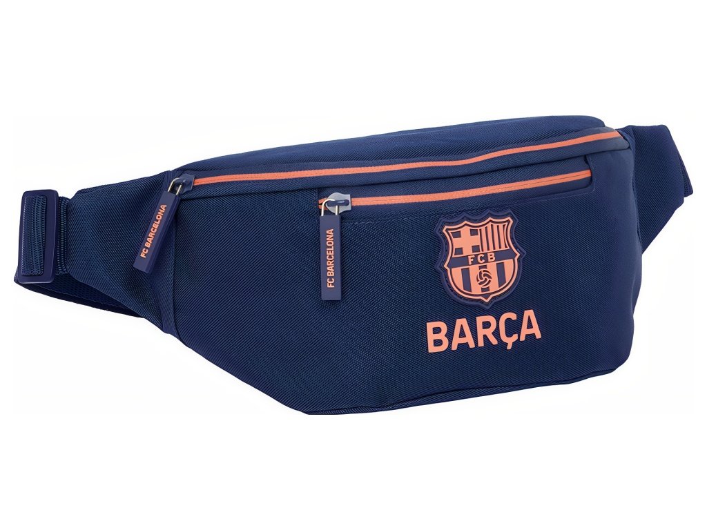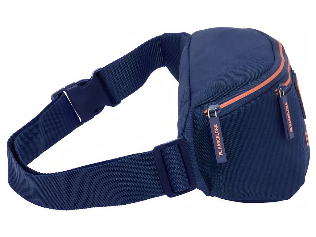 Tmavomodrá ľadvinka FC Barcelona na každodenné nosenie s dvoma vreckami na zips a nastaviteľným pásom. Prednú stranu zdobí klubový znak a nápis BARÇA v korálovej farbe. Hlavná komora so širokým vstupom pojme telefón, peňaženku aj kľúče. Predné vrecko udrží drobnosti po ruke. Pevná polyesterová tkanina a plastová spona zvládnu bežné denné používanie. Možno nosiť v páse aj krížom cez hruď.