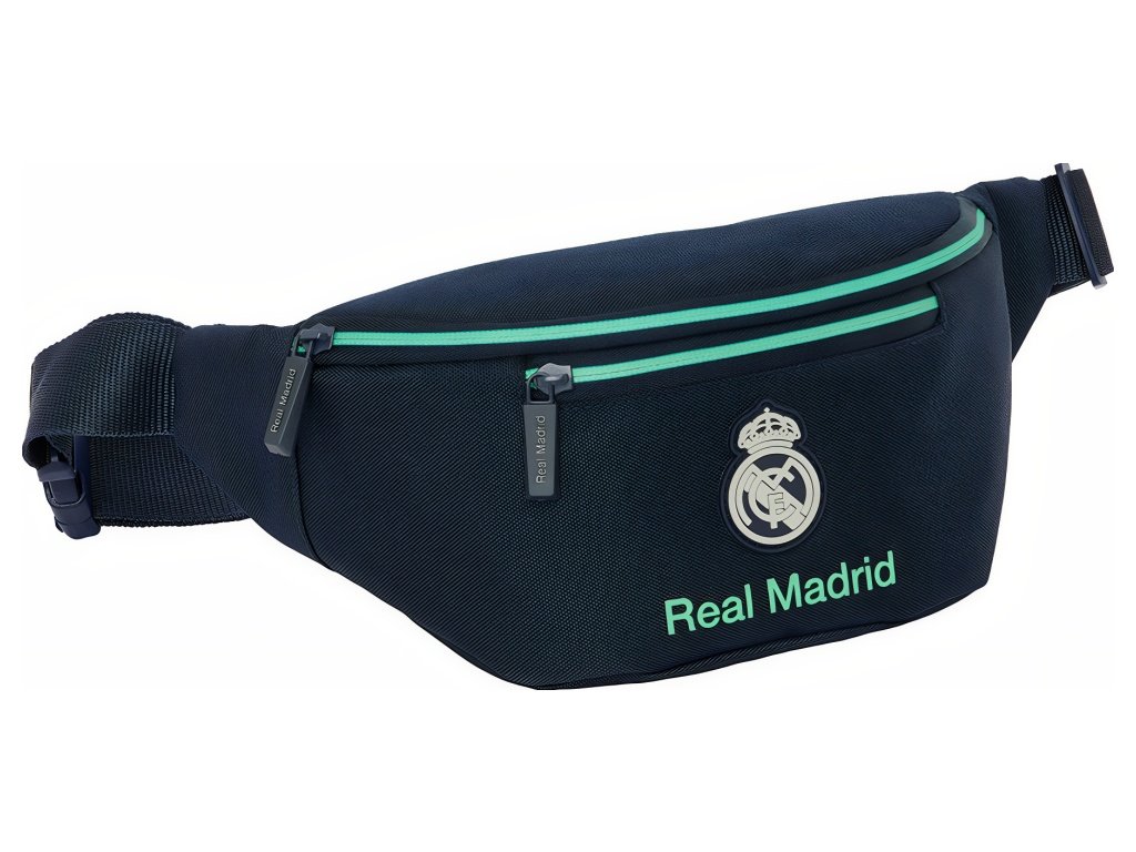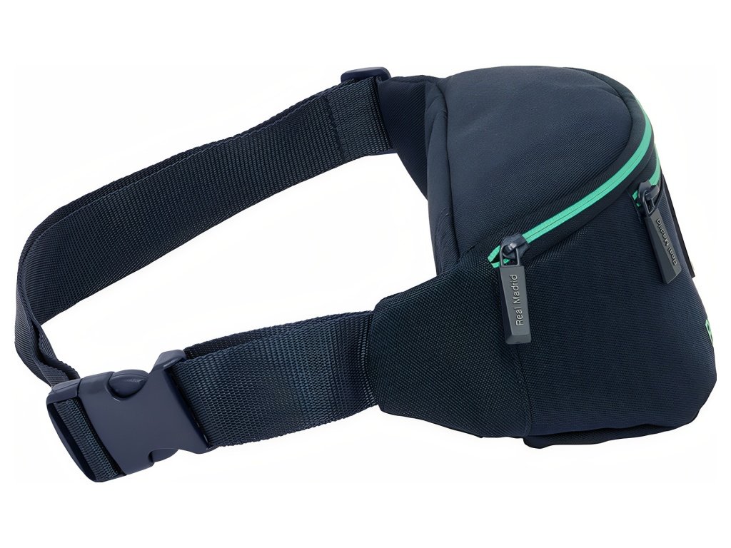Tmavomodrá ľadvinka Real Madrid s dvoma vreckami na zips a nastaviteľným popruhom je praktická na každý deň. Hlavná komora má obojsmerný zips na rýchle otvorenie. Vpredu je samostatné vrecko na drobnosti. Na čele je znak klubu a mätovo zelený nápis Real Madrid. Kontrastné zelené lemy zipsov uľahčujú orientáciu. Širší popruh pohodlne sedí a plastová pracka zaistí rýchle zapnutie. Údržba je jednoduchá – stačí utrieť vlhkou handričkou.
