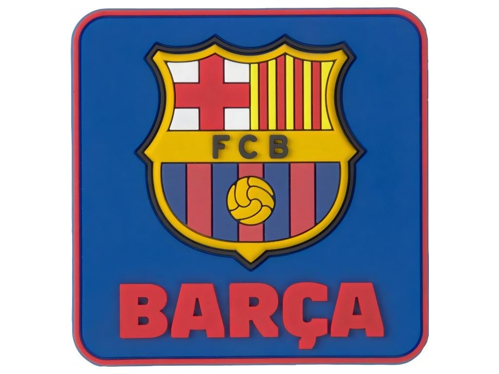 Gumová magnetka FC Barcelona s plastickým 3D znakom klubu a nápisom Barça. Štvorcový formát 7 × 7 cm s hrúbkou iba 2 mm. Znak klubu vystupuje z modrého podkladu v plných klubových farbách — modrej, vínovej, žltej a červenej. Magnetka spoľahlivo drží na chladničke, tabuli alebo inom feromagnetickom povrchu.