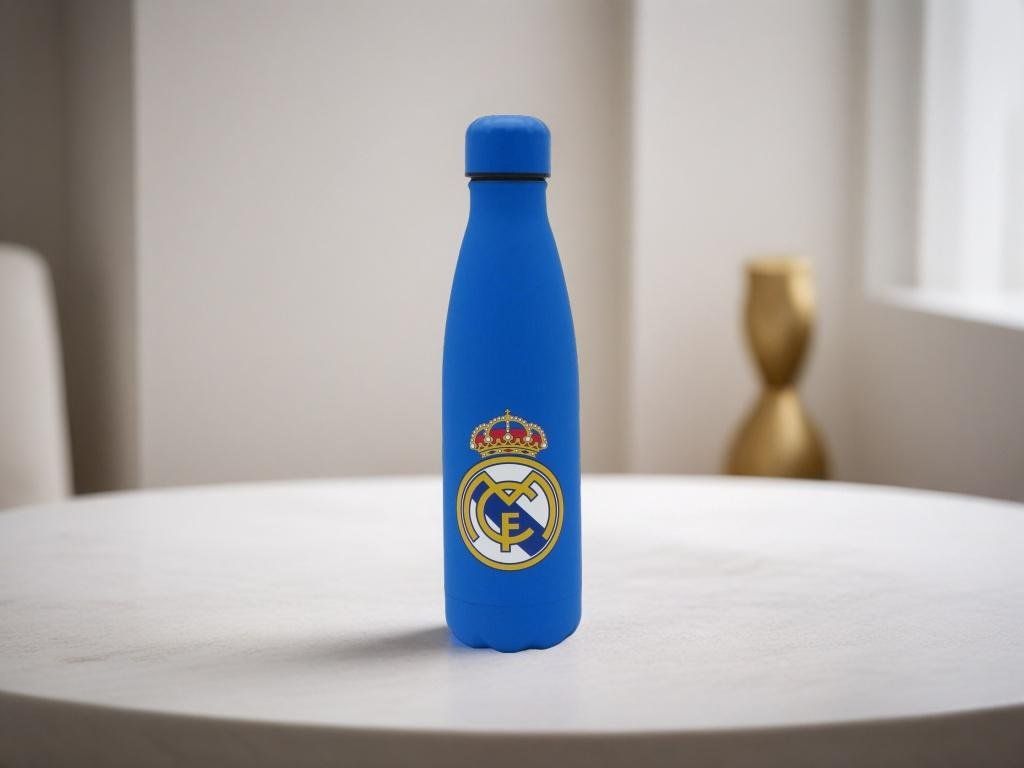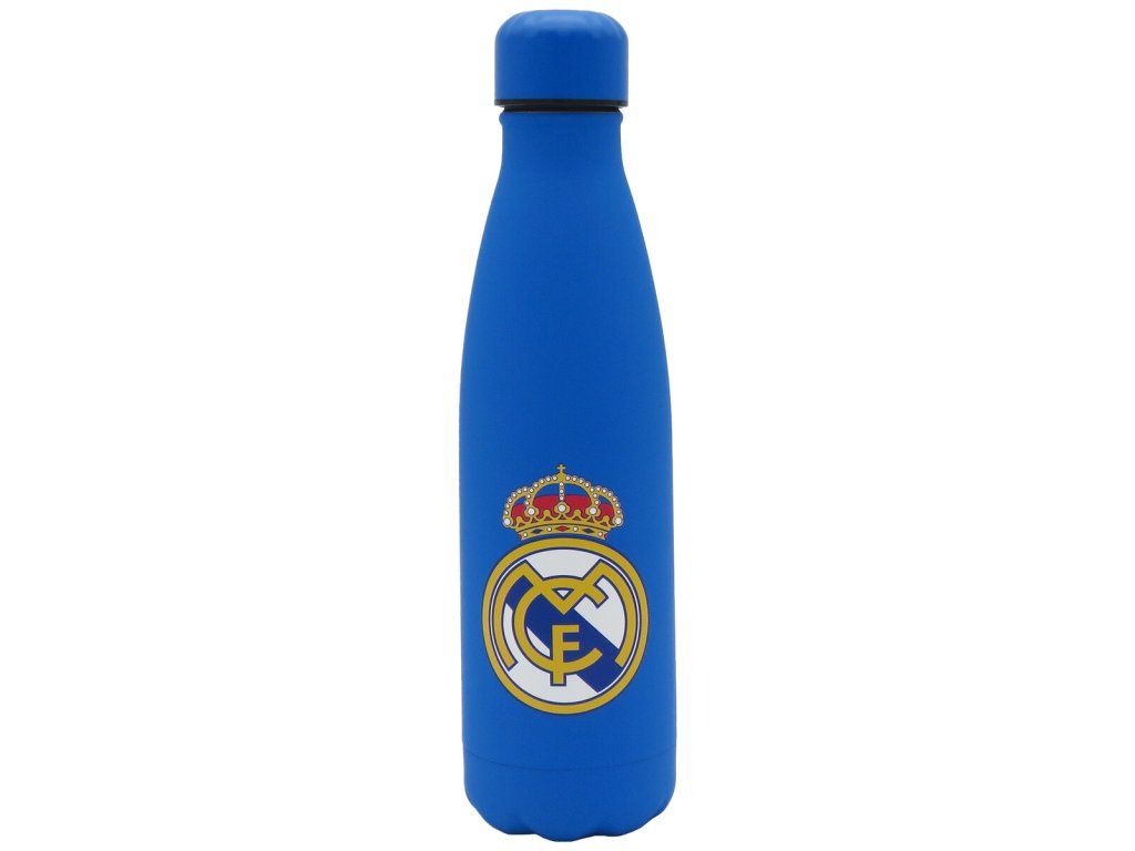 Nerezová termofľaša Real Madrid s pogumovaným povrchom a dvojitou stenou. Objem 500 ml pojme dostatok pitia na celý deň. Dvojitá stena z nerezovej ocele udrží teplé nápoje po dobu 12 hodín a studené až 24 hodín. Pogumovaný povrch je príjemný na dotyk a zabraňuje kĺzaniu. Znak klubu na prednej strane je prevedený odolnou UV tlačou, ktorá je hmatateľná a neodrie sa. Hrdlo s priemerom 34 mm umožňuje ľahko vložiť kocky ľadu pre lepšie chladenie.