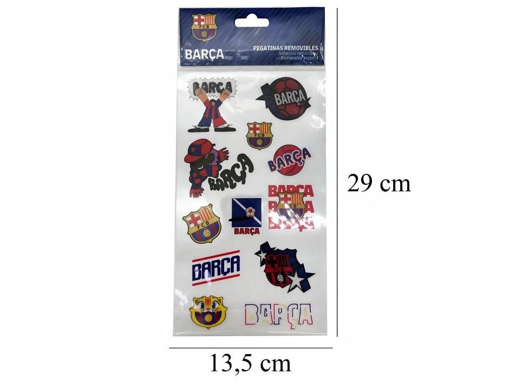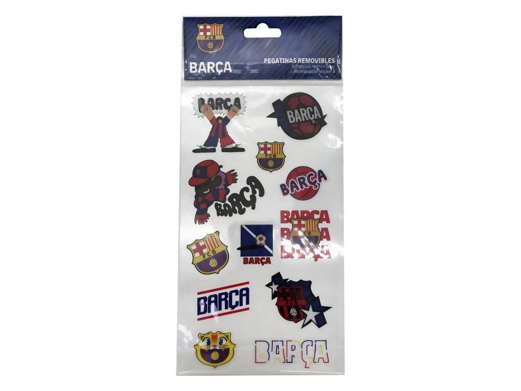 Sada 12 odnímateľných samolepiek FC Barcelona s klubovými motívmi vo farbách Barçy. Na hárku nájdeš znak klubu, nápisy Barça v rôznych štýloch, kreslené postavičky futbalistov i lopty. Samolepky ľahko nalepíš na zošity, dosky, notebook alebo skrinku — a keď ich budeš chcieť premiestniť, bez problémov ich sundáš.