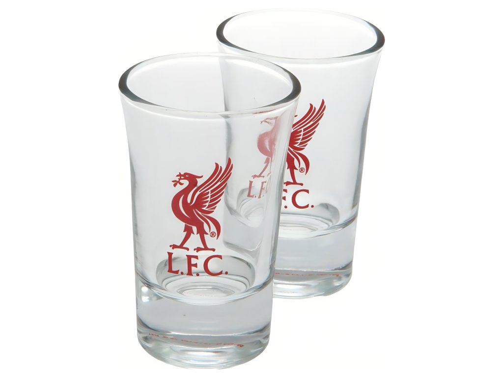 Pohárik na panáky Liverpool FC. Sada 2 ks. Každý panák je zdobený červeným znakom klubu - legendárnym Liverbird. Elegantné a zároveň robustné prevedenie zaisťuje ich dlhú životnosť.
