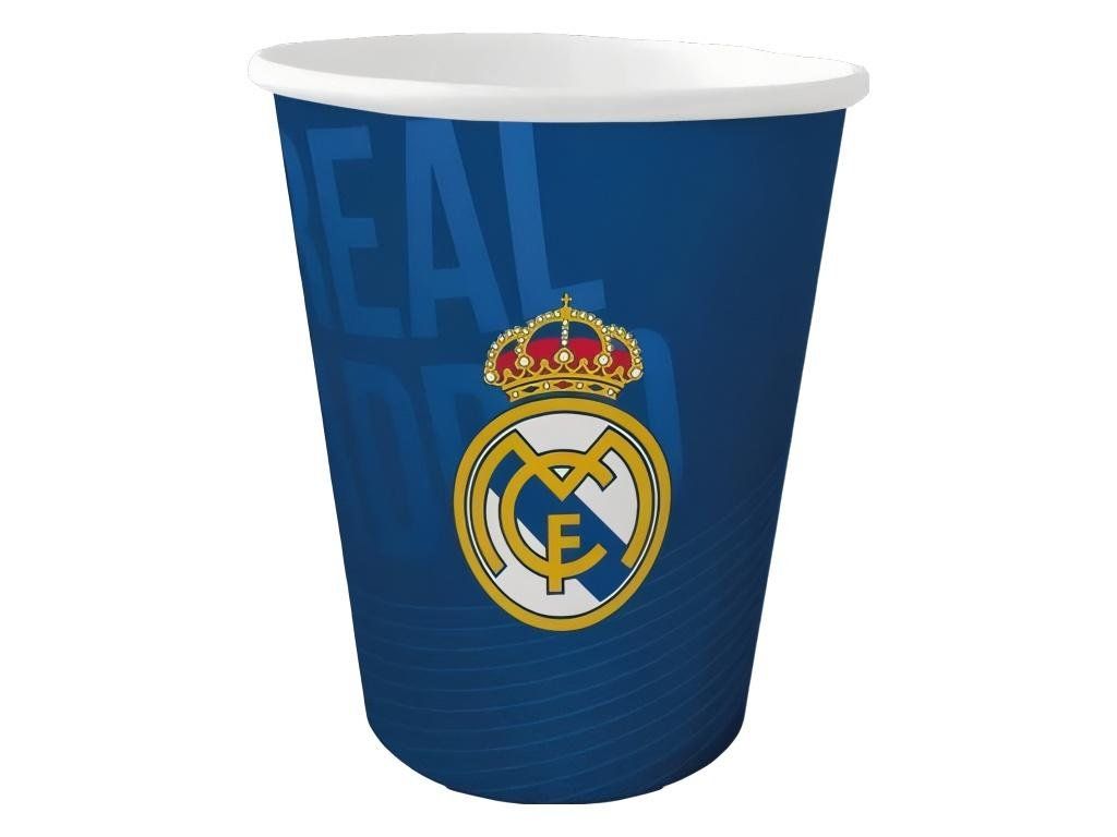Papierové párty poháre Real Madrid s klubovým znakom na narodeninové oslavy a fanúšikovské akcie. Balenie obsahuje 8 pohárov o objeme 250 ml. Tmavomodré telo zdobí veľký znak klubu a nápis Real Madrid v pozadí, vnútro je biele. Poháre sú jednorazové, z pevného kartónu vhodného na studené aj mierne teplé nápoje. Hodia sa na detské narodeniny, sledovanie zápasov s priateľmi alebo klubovú párty.