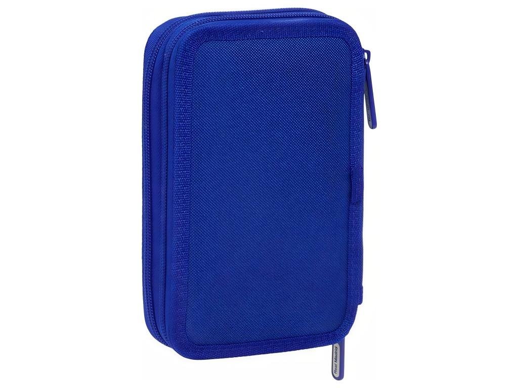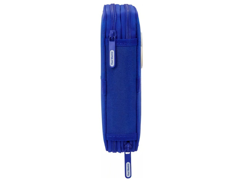 Dvojposchodový školský peračník Real Madrid v modrej farbe s kompletnou výbavou 29 kusov. Obe poschodia sa otvárajú samostatným zipsom a vnútri nájdeš elastické pútka, ktoré držia všetko prehľadne na svojom mieste. V prvom poschodí je grafitová ceruzka, modré a červené pero, guma a strúhadlo spolu s 10 drevenými farebnými pastelkami. Druhé poschodie pojme 14 farebných fixiek. Na prednej strane je našitý gumový znak klubu s 3D efektom a tónovaný nápis Real Madrid. Pútka zipsov nesú nápis Real Madrid.