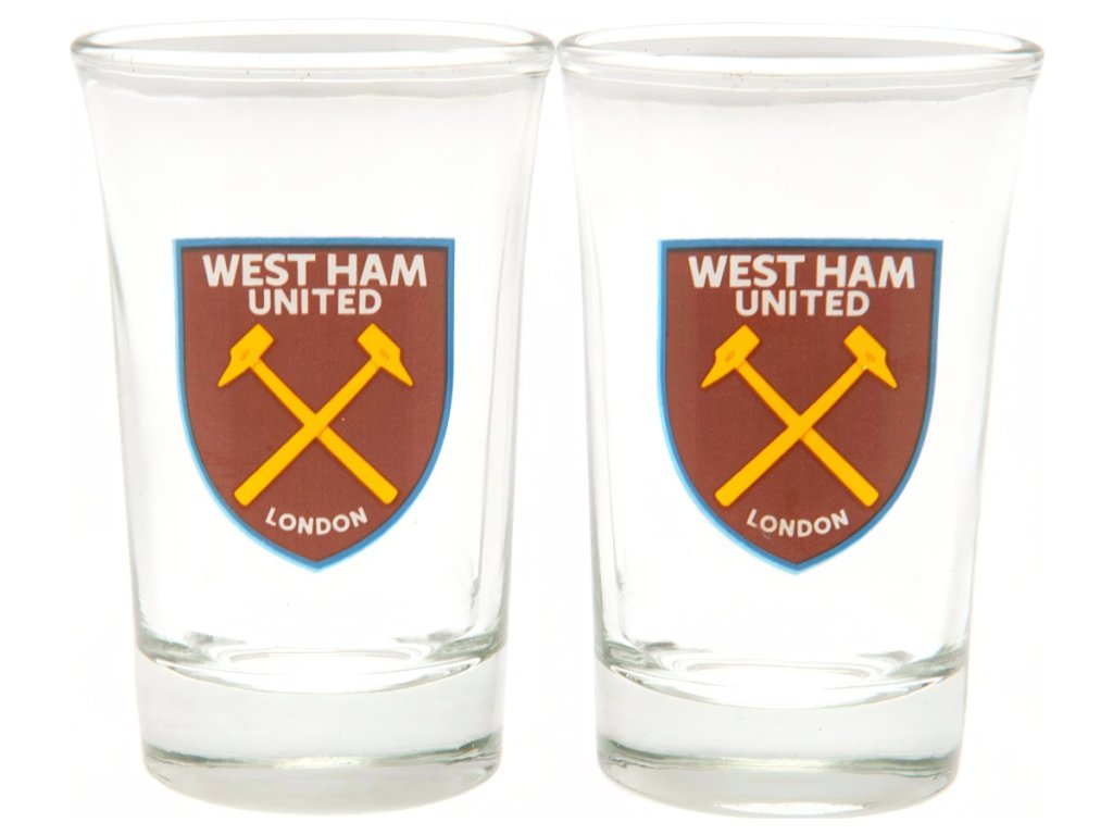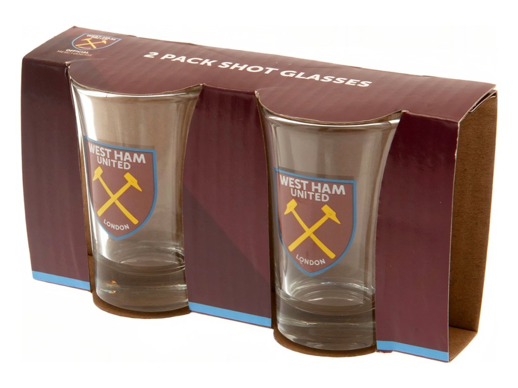 Poháre na panáky West Ham United FC. Sada 2 ks. Každý panák je zdobený farebným znakom klubu. Elegantné a zároveň robustné prevedenie zaisťuje ich dlhú životnosť.