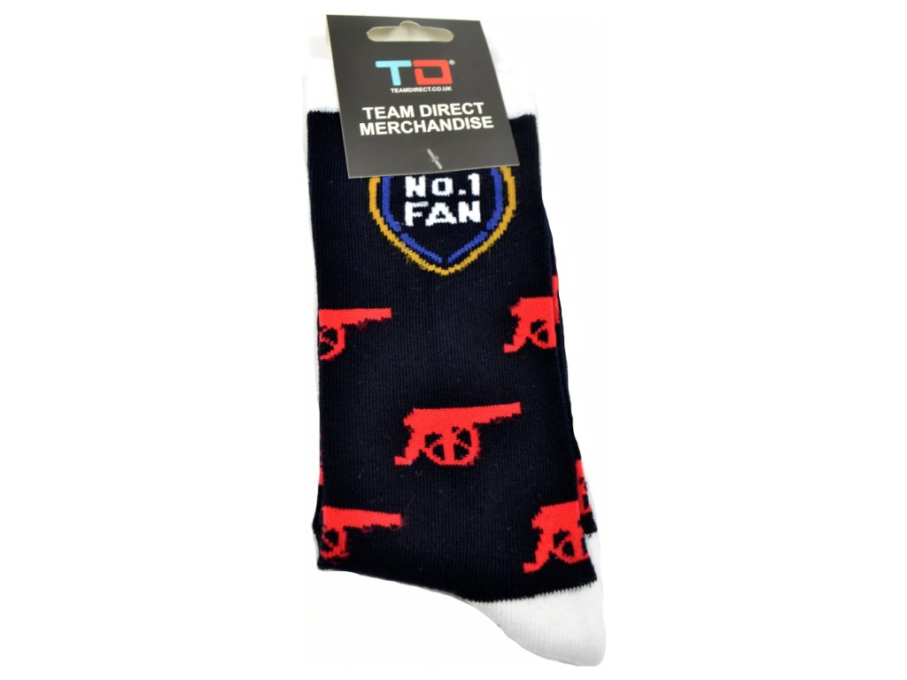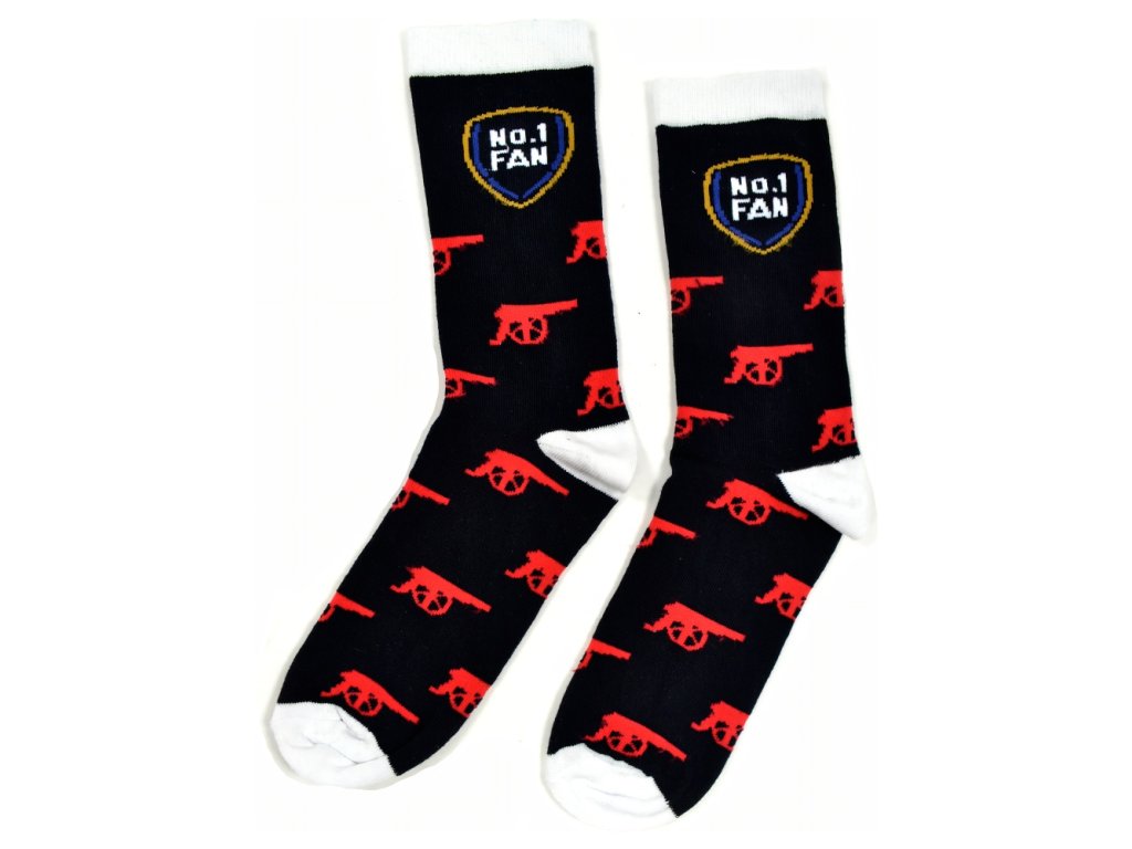 Pánske ponožky Arsenal FC čierne. Červeno zobrazený znak klubu, kanón. Biela špička a päta. Kvalitný materiál.