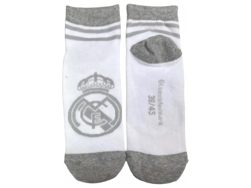 Členkové ponožky Real Madrid v dvoch pároch — biele a tmavomodré. Bavlnená zmes s polyesterom a elastanom zaistí pohodlie aj príjemný kontakt s pokožkou. Každý pár má zosilnenú pätu a špičku pre vyššiu odolnosť. Na oboch pároch je znak Real Madrid CF vo výplete, tmavomodrý pár dopĺňa nápis RMCF.