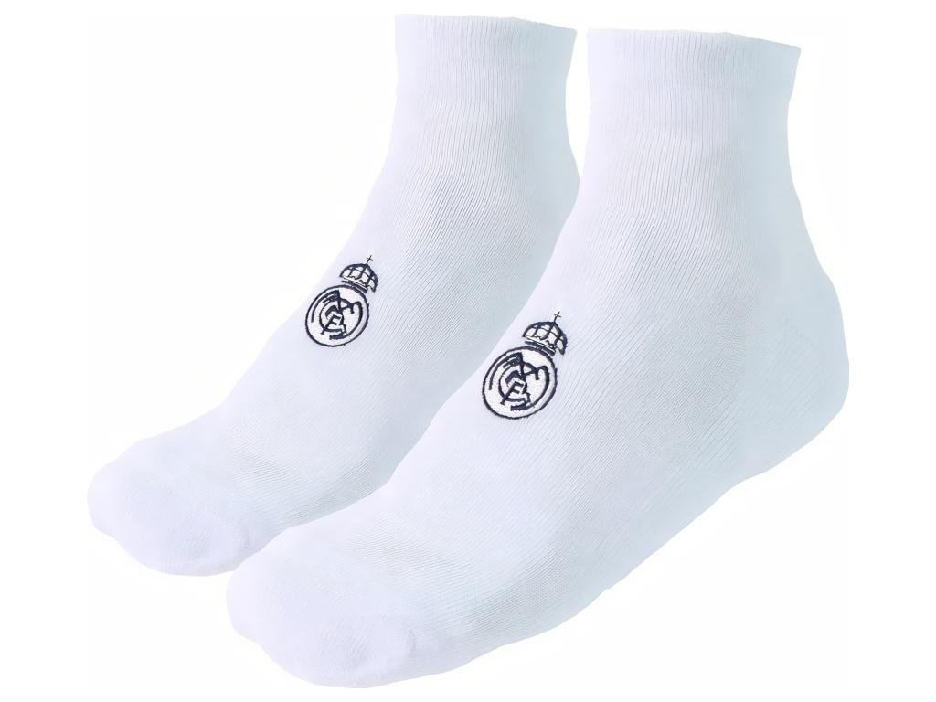 Členkové ponožky Real Madrid v balení troch párov — biele, šedé a tmavomodré. Zloženie s prevahou bavlny (82 %) zabezpečuje príjemný pocit na nohe a prirodzenú priedušnosť. Prímesou nylonu získavajú ponožky odolnosť a elastan sa postará o pohodlné sedenie bez zosúvania. Na priehlavku každej ponožky je vyšívaný znak Real Madrid, ktorý vydrží aj časté pranie.