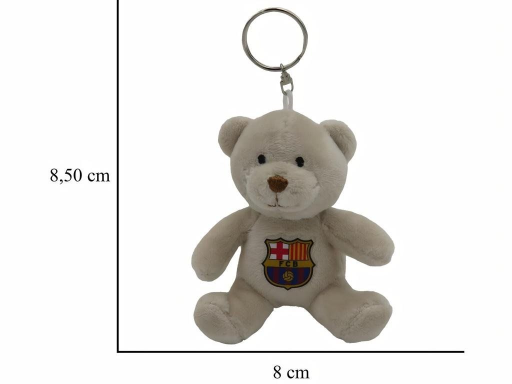 Plyšový prívesok na kľúče FC Barcelona v podobe roztomilého medvedíka. Krémový medvedík z mäkkého 100% polyesteru má na brušku znak klubu. Na hlave je pripevnený kovový krúžok s karabínkou, vďaka ktorému ho ľahko pripneš ku kľúčom, batohu alebo taške. Kompaktná veľkosť 8,5 cm sa hodí kamkoľvek.