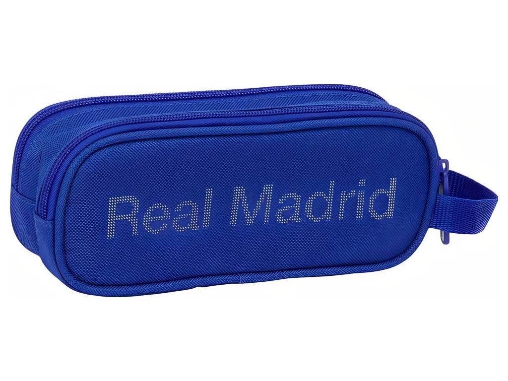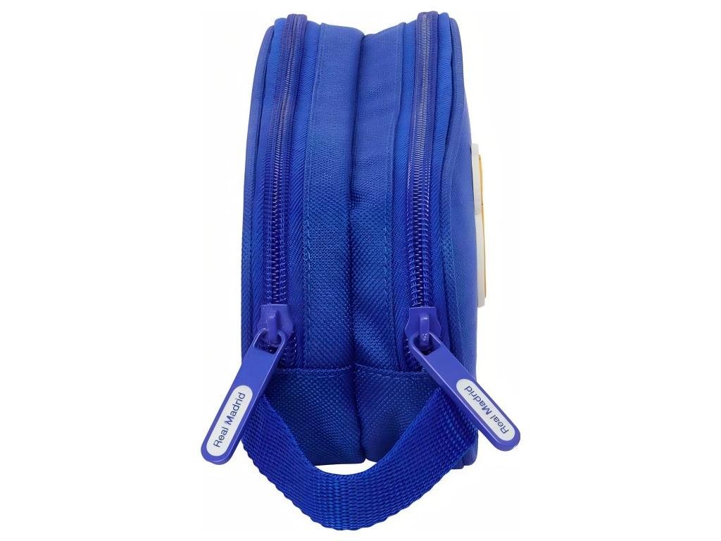 Puzdro Real Madrid s dvoma samostatnými komorami na zips. Priestranné puzdro z polyesteru pojme písacie potreby, pravítko aj nožnice a prehľadne ich roztriedí. Na prednej strane je plastický gumový znak klubu, zadnú stranu zdobí nápis Real Madrid v bodkovanom prevedení. Bočné textilné držadlo uľahčí prenášanie a ťahadlá zipsov s nápisom Real Madrid dotvárajú celkový dizajn.