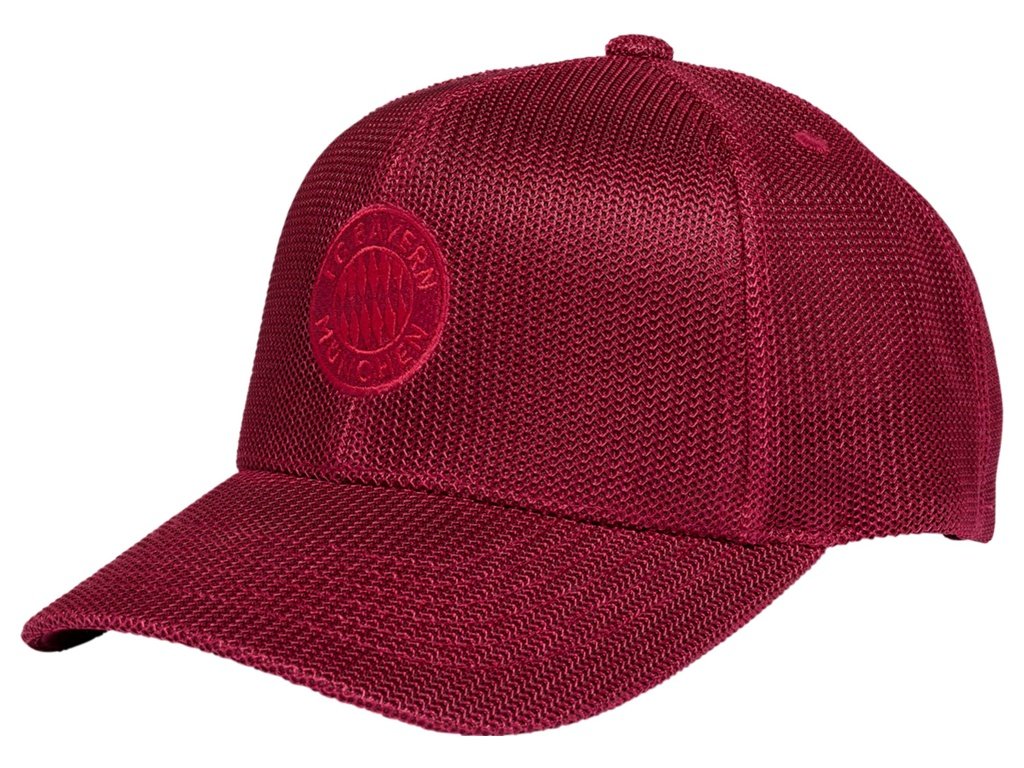 Štýlová Šiltovka FC Bayern Mníchov vo vínovej farbe. Šiltovka je vyrobená z pružnej sieťoviny. Na prednej strane uprostred je vyšitý znak futbalového klubu. Materiál tvorí 97% polyester a 3% elastan. Zapínanie je na suchý zips. Nastaviteľná veľkosť 55-61cm. Ideálna voľba pre horúce dni.