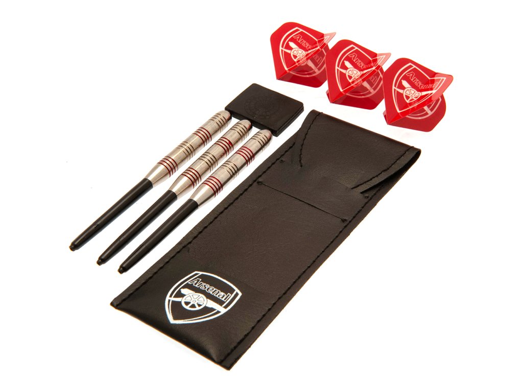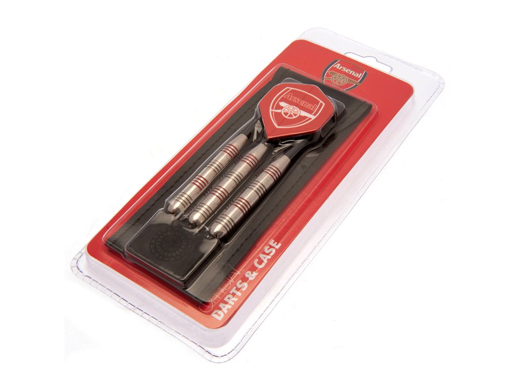 Hádzacie šípky Arsenal FC v klasickej červenej farbe a so znakom futbalového klubu Arsenal. Súprava obsahuje 3 šípky s príslušenstvom. 3x mosadzné telo s ozdobnými vrúbkami a kovovým hrotom. 3x plastové násadky. 3x červené PVC letky. Súčasťou sady je tmavo hnedé kožené puzdro s bielym znakom Arsenal FC. Vhodné pre začiatočníkov aj mierne pokročilých hráčov.