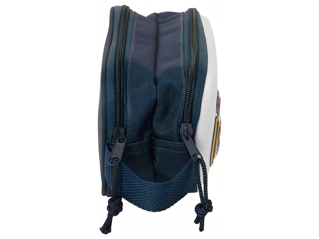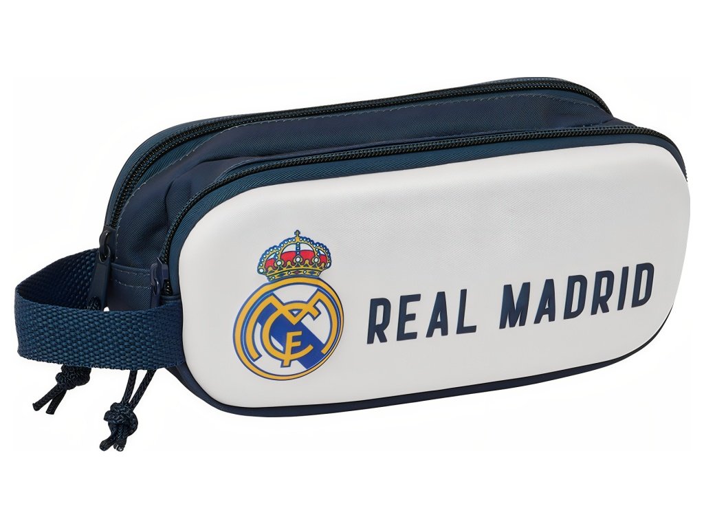 Školské puzdro Real Madrid FC v modro‑bielej kombinácii s dvoma komorami a plastickým 3D znakom. Kombinácia modro‑bielej farby odkazuje na klubové farby. Prednú stranu zdobí znak klubu v plnej farbe s 3D efektom. Puzdro má 2 komory. Zapínanie je na dva samostatné zipsy. Každá priehradka poskytne priestor na písacie potreby a drobnosti. Prehľadné členenie uľahčí rýchle hľadanie. Tvar sa ľahko zmestí do školského batohu. Rozmer 21 × 8 × 6 cm. Materiál je 100 % polyester. Materiál je odolný. Materiál sa ľahko udržiava. Odporúčané je utierať vlhkou handričkou. Hodí sa pre školákov aj fanúšikov Real Madrid FC.