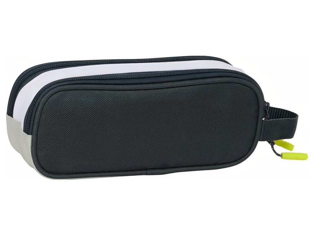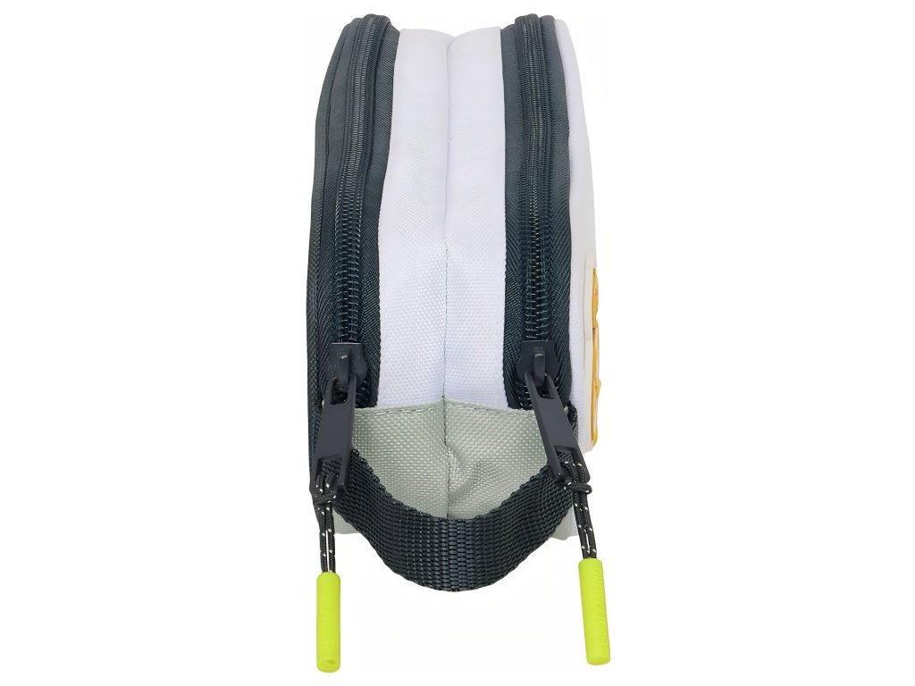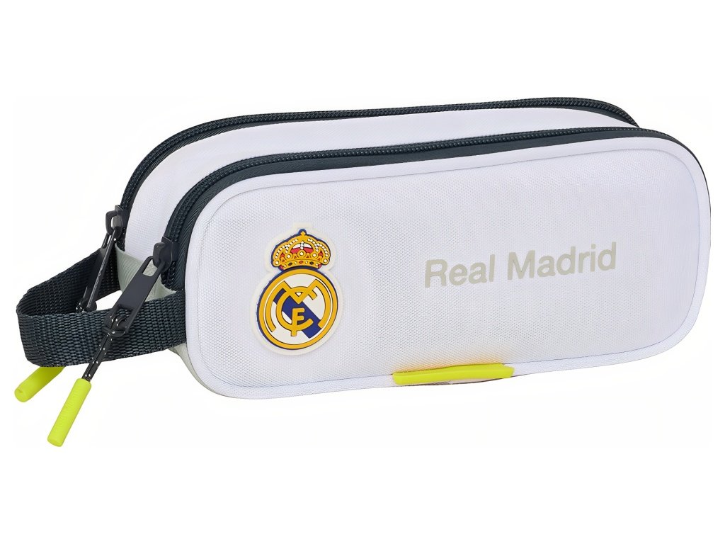Školské puzdro Real Madrid FC v elegantnej bielej farbe s klubovým znakom a 2 komorami. Dizajn vychádza z tímovej výbavy sezóny 25/26. Na prednej strane je výrazný znak klubu. Puzdro tvoria dve komory na zips. Každá komora prehľadne oddelí písacie potreby od drobností. Na boku je praktické bočné pútko na jednoduché prenášanie. Dvojité usporiadanie pomáha udržať poriadok počas dňa. Rozmery sú 21 x 6 x 8 cm. Objem je 1 l. Puzdro je nevybavené. Hodí sa do školy, na tréningy aj na krúžky.