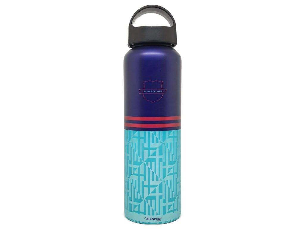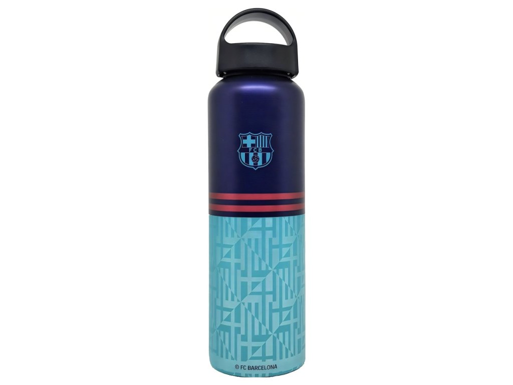 Športová fľaša FC Barcelona v modrej a tyrkysovej farbe. Matný povrch. Klubový znak uprostred. Plastový skrutkovací uzáver. Kvalitný hliník. Objem 600 ml.