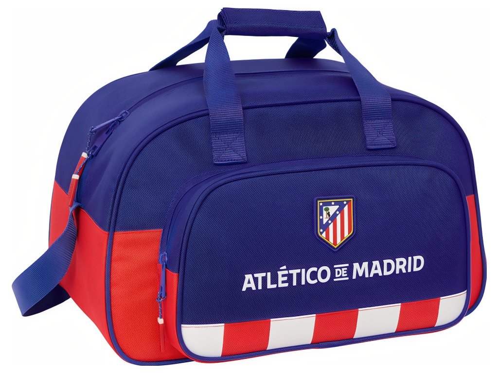 Športová taška Atlético de Madrid v modrej a červenej s predným vreckom na zips a nastaviteľným popruhom. Športový vzhľad v klubových farbách pôsobí výrazne. Prednú stranu zdobí znak Atlético de Madrid. Vybavenie tašky tvorí: Jedna hlavná komora na zips. Priestranné predné vrecko na zips. Hlavná komora má zapínanie na dvojitý jazdec pre ľahké otvorenie. Predné vrecko je ideálne na drobnosti a rýchly prístup. Rozmery 40 × 23 × 24 cm. Objem 22 l. Súčasťou je nastaviteľný ramenný popruh. Horné madlo je pohodlné do ruky. Spodnú časť chránia ochranné nožičky. Vo vnútri je vyberateľné polotuhé dno pre lepšiu stabilitu obsahu. Taška je z polyesteru. Odporúčame utierať vlhkou handričkou. Hodí sa na tréningy aj na telesnú výchovu a krátke cesty.