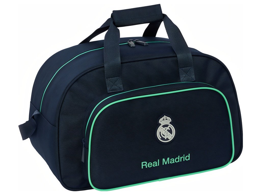 Športová taška Real Madrid v tmavomodrej so zeleným lemovaním a objemom 22 l na tréning aj krátke cesty. Široké otvorenie s dvojitým zipsom uľahčí prístup do hlavnej komory. Predné vrecko na zips udrží drobnosti pokope. Nastaviteľný ramenný popruh a spojené madlá s polstrovanou rukoväťou zabezpečujú pohodlné nosenie. Vo vnútri je vyberateľné polotuhé dno pre stabilitu. Na zadnej strane je priehľadné okienko na menovku. Znak a nápis Real Madrid na čele jasne vyjadrujú podporu klubu.