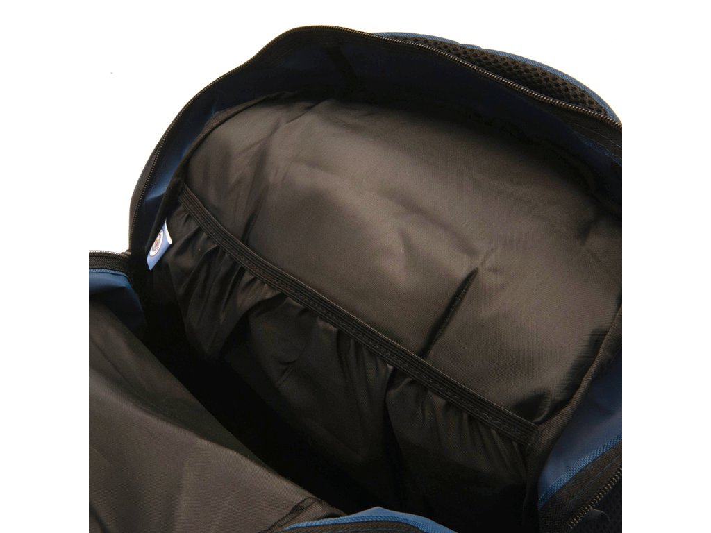 Štýlový Batoh Manchester City FC v kombinácii modrej a čiernej farby s farebným znakom Manchester City FC na prednej strane. Hlavná komora ruksaku ponúka otváranie na dvojitý zips, vo vnútri nájdete elastickú kapsičku pre bezpečné uskladnenie menších predmetov. Predná časť batohu je vybavená ďalším vreckom na zips. K dispozícii sú aj 2 postranné sieťové vrecká, ideálne pre fľašu s nápojom alebo malé snacky. Pre pohodlie na cestách batoh disponuje polstrovaným chrbtom a nastaviteľnými ramennými popruhmi. Pohodlná rukoväť na hornej strane uľahčuje manipuláciu s batohom. Veľkosť 46x32x14 cm.