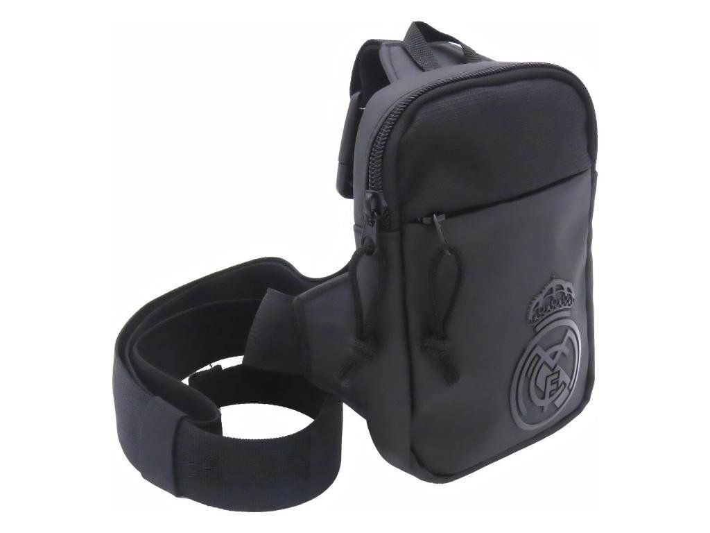 Taška cez rameno Real Madrid v kompletne čiernom prevedení s pogumovaným znakom klubu. Kompaktné rozmery 12 × 17 cm pojmú telefón, kľúče, peňaženku a ďalšie drobnosti. Dve vrecká na zips umožňujú prehľadné roztriedenie vecí. Nastaviteľný popruh s plastovou prackou si ľahko prispôsobíš na požadovanú dĺžku. Malé uško hore poslúži na zavesenie alebo rýchle prenesenie v ruke.