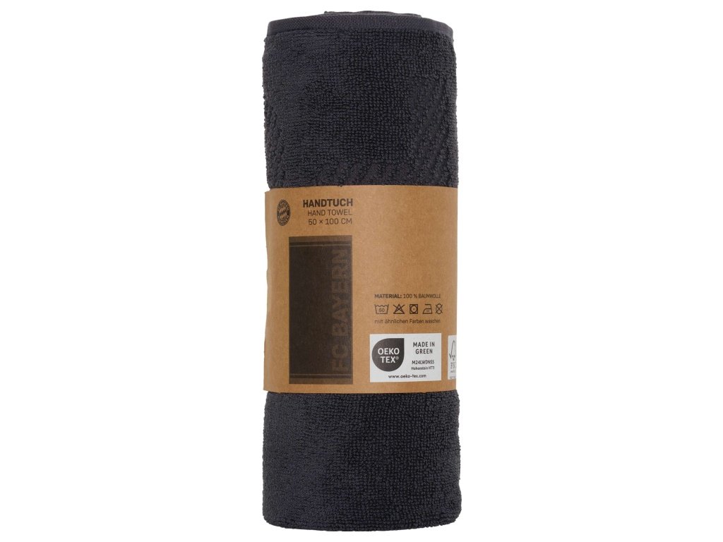 Uterák FC Bayern Mníchov v elegantnej čiernej farbe s vtkaným klubovým nápisom. Minimalistický dizajn pôsobí moderne a štýlovo. Na ploche je decentne vtkaný nápis „FC Bayern“, ktorý podčiarkuje klubovú hrdosť. Rozmer 100 × 50 cm je ideálny do kúpeľne, posilňovne aj na cesty. Materiál tvorí 100 % bavlna, ktorá je mäkká, príjemná na dotyk a skvele saje. Vtkaný motív je trvácny a odolný voči praniu. Uterák možno prať na 60 °C. Neodporúča sa bielenie a sušenie v sušičke.