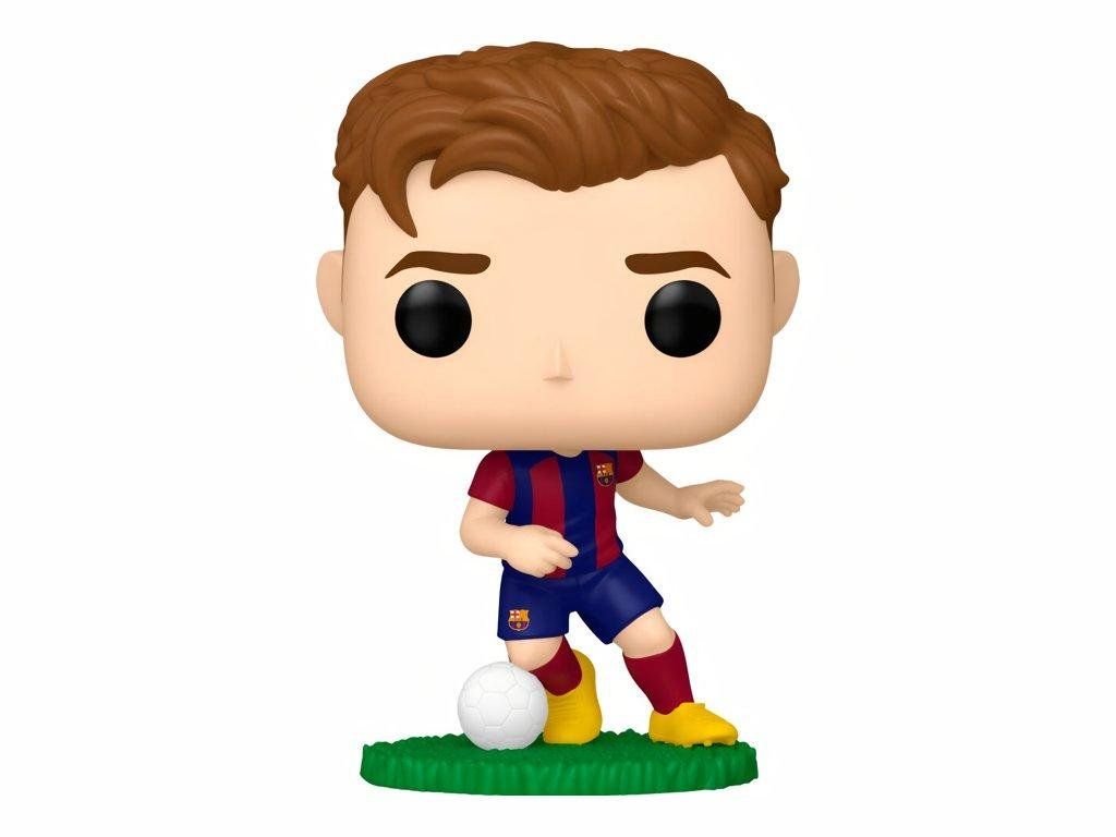 Zberateľská vinylová figúrka Funko POP! 63 Football zachytáva Gaviho v domácom drese FC Barcelona. Figúrka stojí na trávnatom podstavci v hernom postoji s loptou pri pravej nohe. Gavi má oblečený ikonický blaugrana dres s červenomodrými pruhmi, tmavomodré šortky, vínové štulpne a žlté kopačky. Na drese aj šortkách je viditeľný znak FC Barcelona. Výška figúrky je cca 10 cm a je balená v kartónovej krabičke s priehľadným okienkom — môžeš ju vystaviť aj bez rozbaľovania.